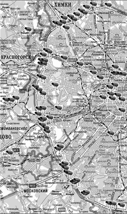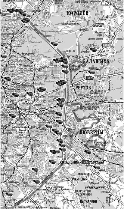 Карта размещения видеокамер, контролирующих соблюдение ПДД в г. Москве и ближнем Подмосковье